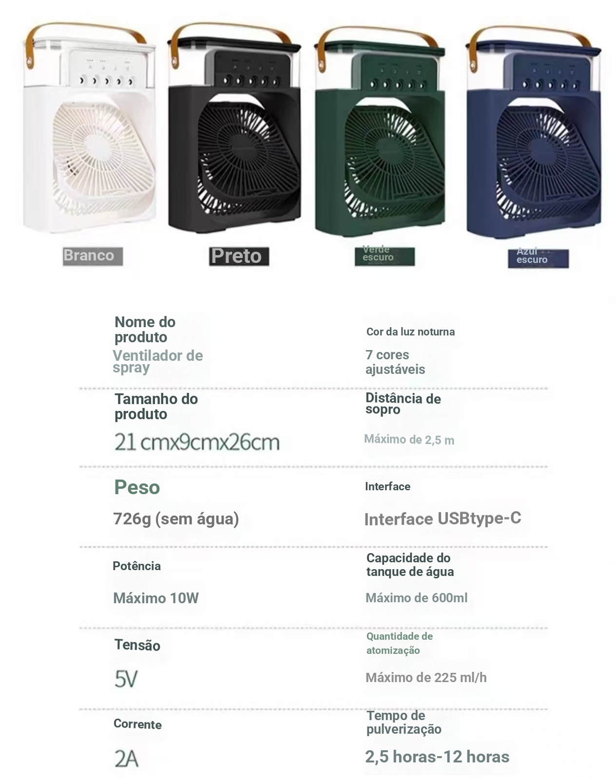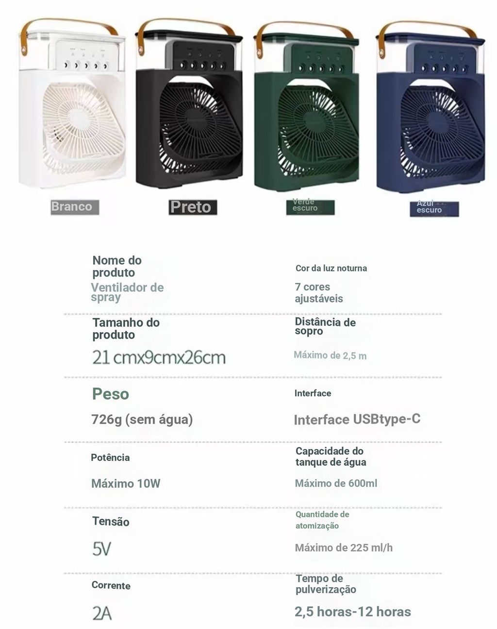 Ventilador de Água com Névoa Fria, Ajustável e Recarregável